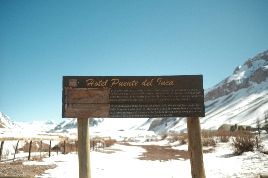 A Puente del Inca é uma formação geológica natural com uma história rica, envolvendo lendas, uso histórico e de uma beleza cênica. A área também abrigou um hotel histórico e uma capela, que sobreviveu a um deslizamento de terra que destruiu o hotel.